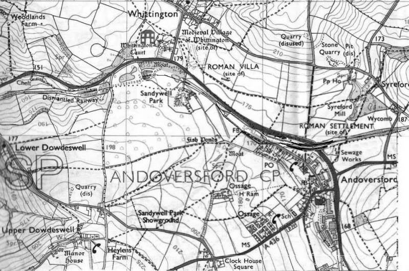 Andoversford with Banbury and Cheltenham Direct Railway formation intact South of A40